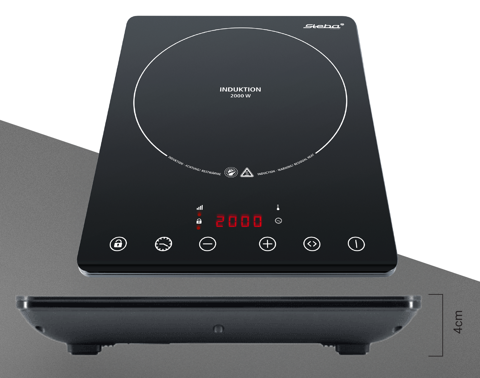 Bảng điều khiển cảm ứng của bếp từ Steba IK65 Slim được thiết kế trực quan, dễ sử dụng. Các phím chức năng được bố trí hợp lý, giúp bạn dễ dàng điều chỉnh công suất, nhiệt độ và thời gian nấu. Màn hình hiển thị rõ ràng các thông số, giúp bạn kiểm soát quá trình nấu nướng một cách chính xác.